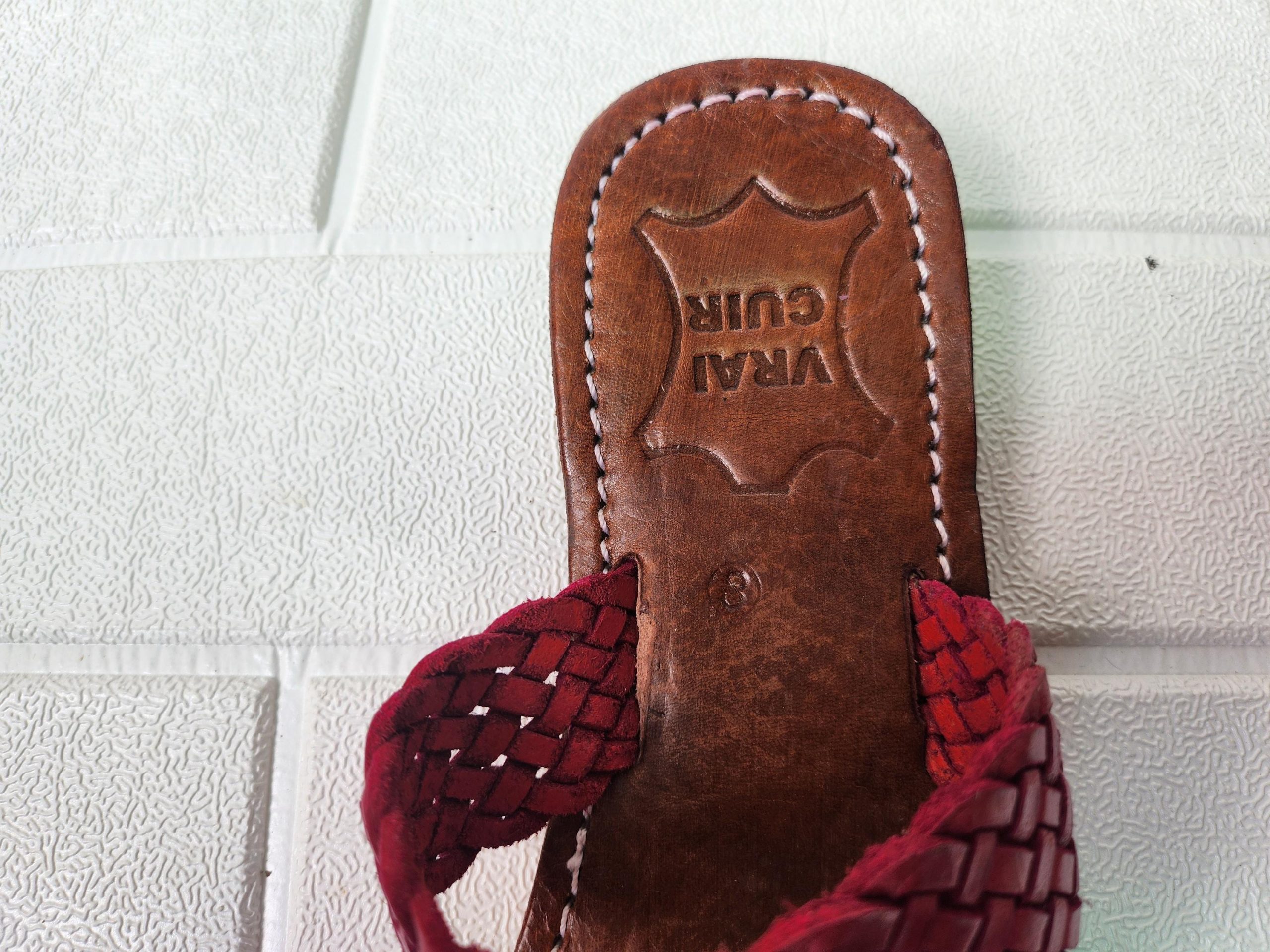 Double Strap Braided Moroccan Sandals For Women – Handmade Red Leather Summer Flats – Artisan Slip-on Shoes 37 To 42 – Real Leather Slides