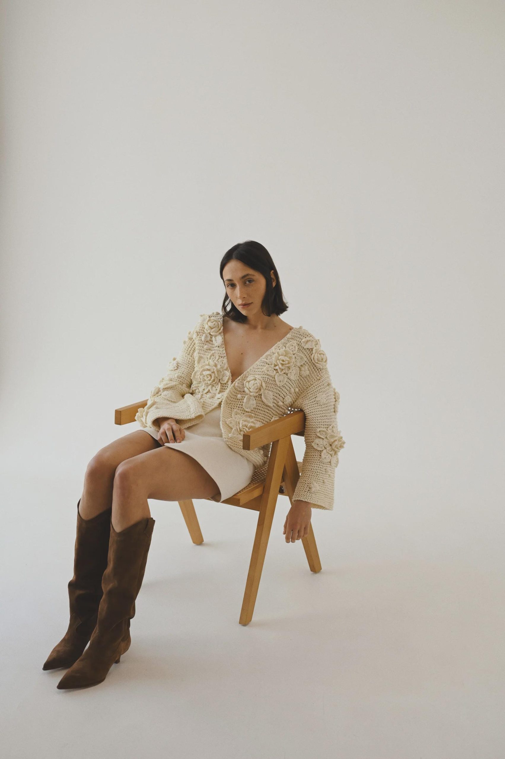 This lightweight cardigan is ideal for breezy evenings, travel, or workdays when you want to stay cozy without overheating. Each one is meticulously hand-knitted, ensuring a unique texture and artisan charm. Its minimal design and neutral tones allow easy pairing with various styles and colors in your wardrobe.