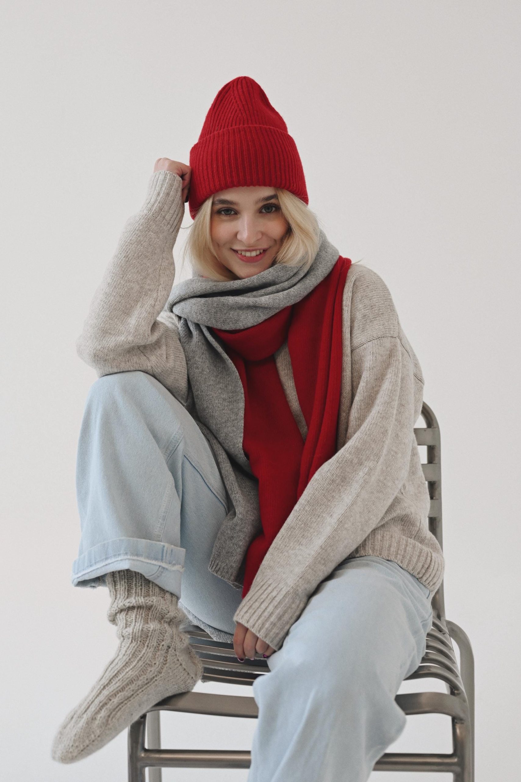 This 100% luxurious merino wool socks come in cool beige and graphite shades. They offer a delightful, warm feel and are exceptionally comfortable to wear. Handcrafted with care, these socks are available in two sizes, enhancing a relaxed and attractive look. Pair them with linen, viscose trousers, or sweaters in cashmere, mohair, wool, angora, or cotton for a stylish ensemble.