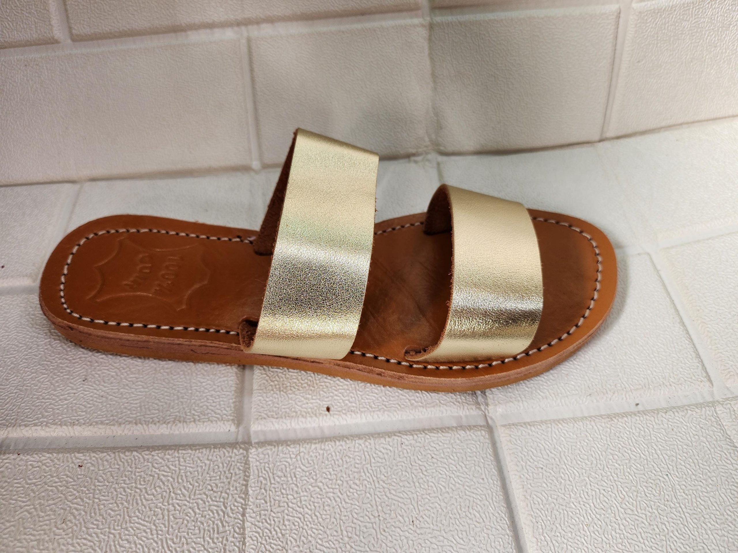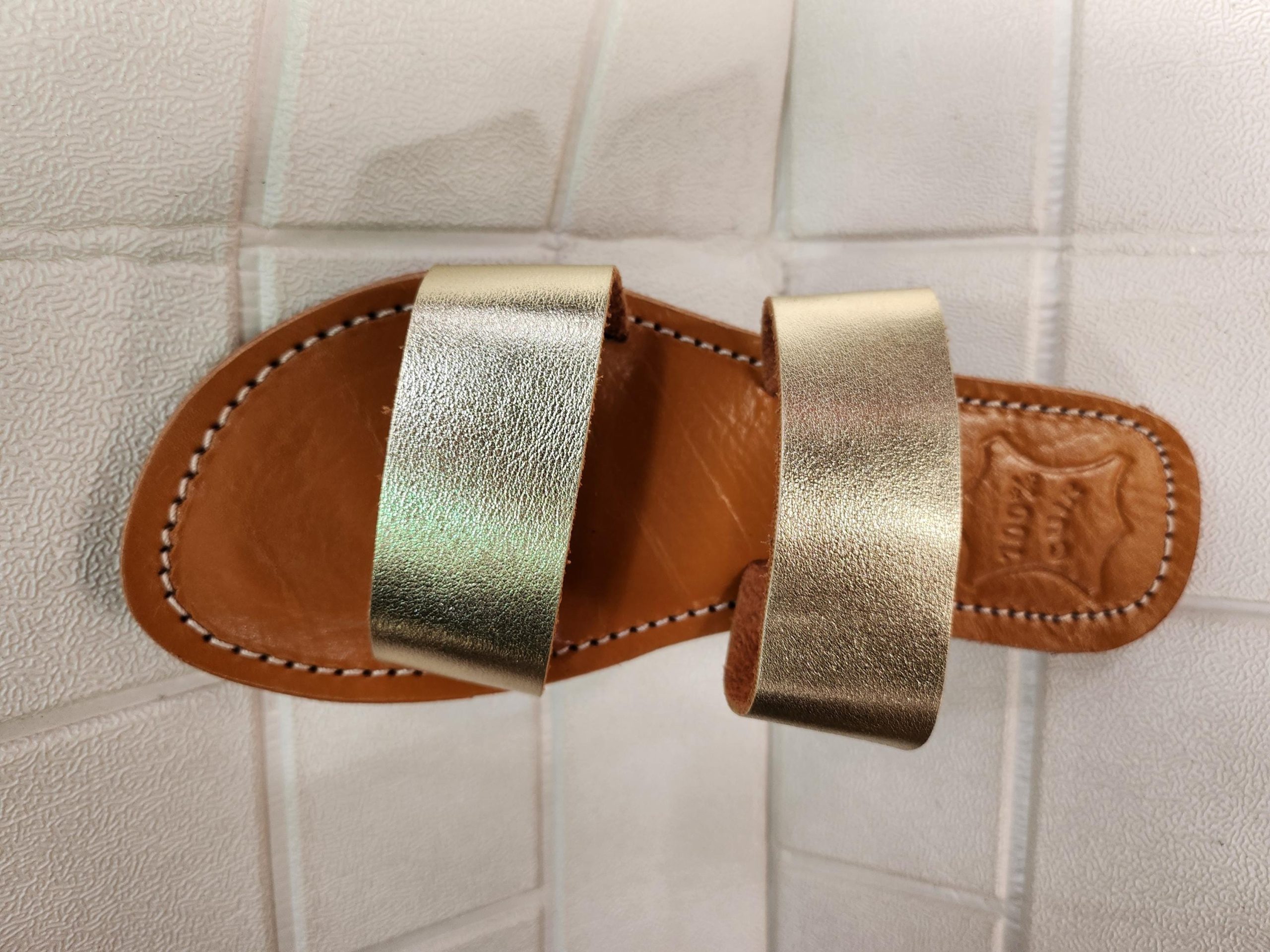 Handmade Moroccan Leather Sandals For Women – Gold Strappy Sandali Donna | Flat Leather Womens Sandals | Ledersandalen Damen |