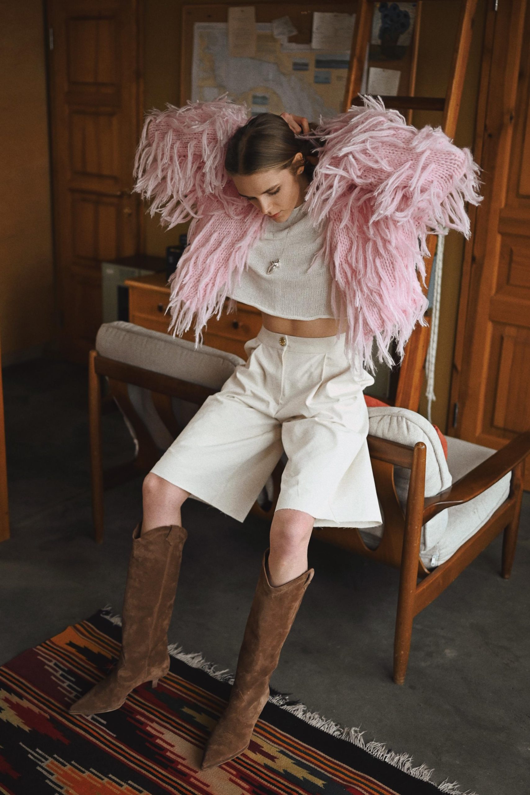 Handmade Pink Alpaca Merino Cardigan: Cropped Wool Knit Jacket