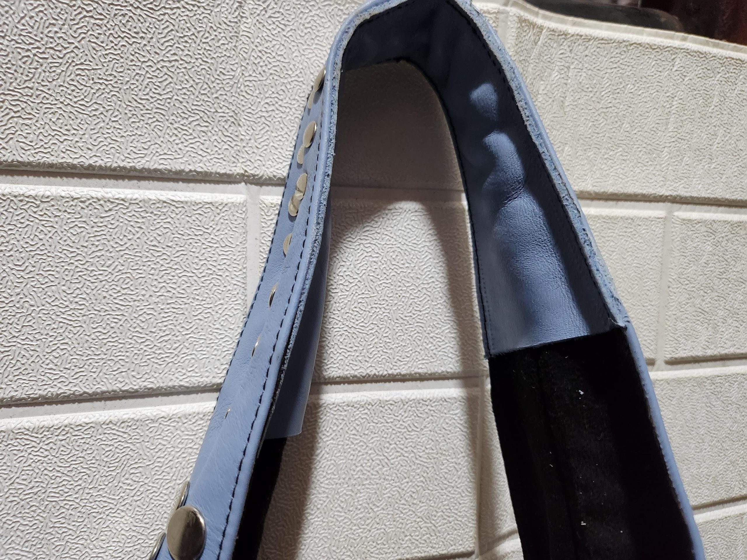 Moroccan Leather Tote – Soft Blue Studded Shoulder Bag | Handmade Boho Artisan Purse | Light Blue Shopper – Large & Small Sizes
